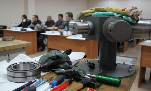 Второй день включал в себя прикладные задания (оценка состояния, точности размеров и формы посадочных поверхностей вала и корпуса для подшипников качения, выбор регулировочных значений зазоров по каталогу и пр.) и практический монтаж подшипников на базе мобильного обучающего класса.